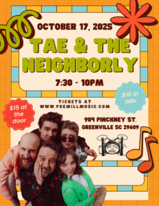 TAE & The Neighborly are coming in town to perform on our stage October 17th from 7:30-10pm!