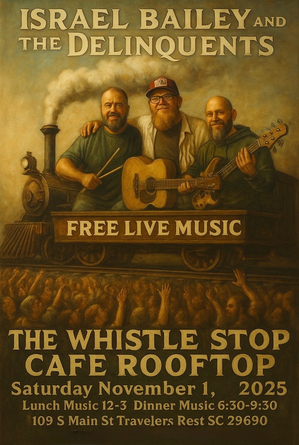 Join us for this acoustic trio offering a unique blend of covers from old to new throughout many musical genras. Founded in 2020 and based out of Travelers Rest, South Carolina, this three piece brings a new take on all your favorite music with a big band feel in a small custom package. Requests welcome!
